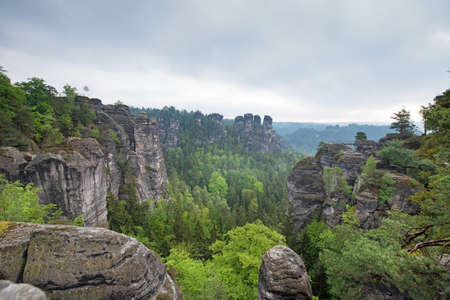 National park Saxon Switzerland, Germany: View from viewpoint of Bastei in Saxon Switzerland, National park Saxon Switzerland. Germany, Kurort Rathen near Dresden