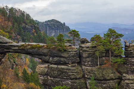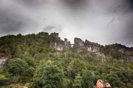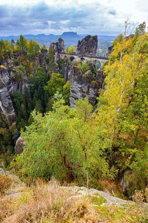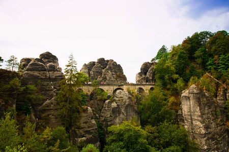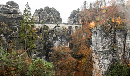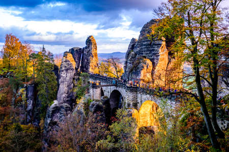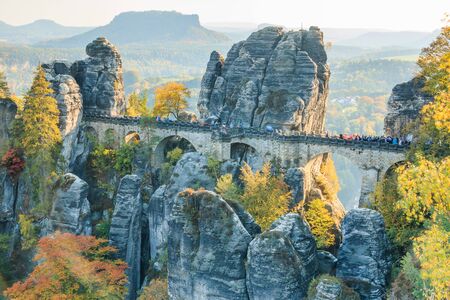 Saxon Switzerland National Park, Germany 04.08.18. Scenic autumn view on the Bastei bridge,