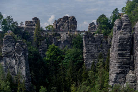 Sandstone mountains and Bastai bridge in Saxon Switzerland in Germany