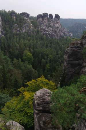 National park Saxon Switzerland, Germany: View from viewpoint of Bastei in Saxon Switzerland, National park Saxon Switzerland. Germany, Kurort Rathen near Dresden