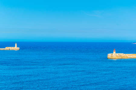 Lighthouses at the harbor in Bastia, Corsica, the French island