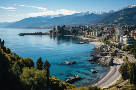 Generative AI : Aerial view of Mudanya a small town along the Marmara Sea coastline Bursa Turkey