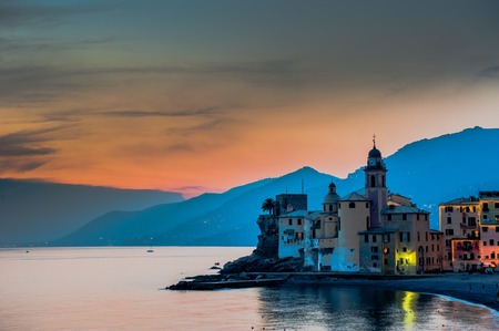 Beautiful Sunset on the Pebble Beach in Camogli near Genoa