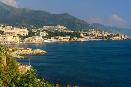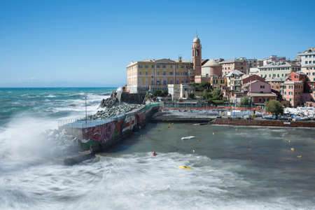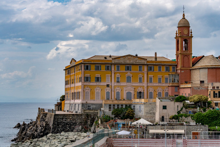 Ligurian shore and the sea in Boccadasse next to Genoa city, Liguria, Italy