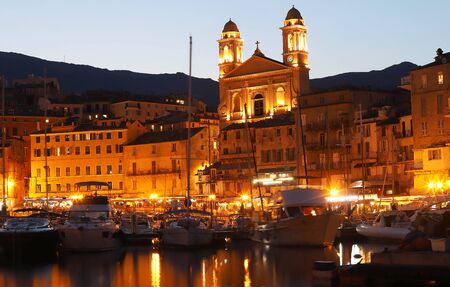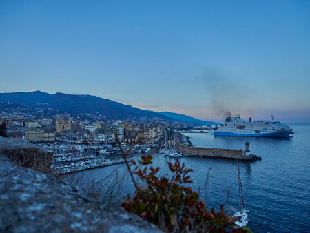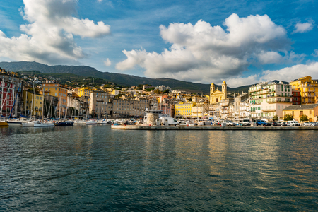 Port of city of Bastia on the coast of the mediterranean sea on Corsica island in the evening, France