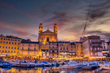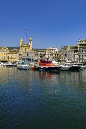 View of St Jean Baptiste cathedral and old port of Bastia ,Corsica island - second largest corsican city and main entry point to the island.