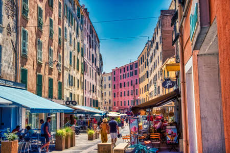Genova Nervi historical village district typical painted houses