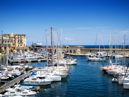 Panoramic view of the old port of Rhodes, Greece.
