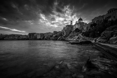 Town beach in Ermoupoli on Syros island in Greece.