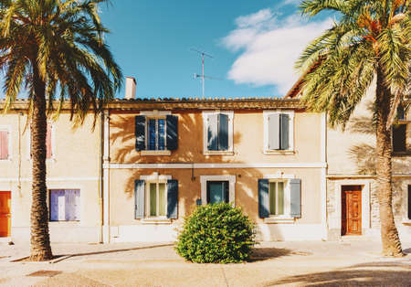 Pretty colorful buildings in Arles, France. Popular travel destination
