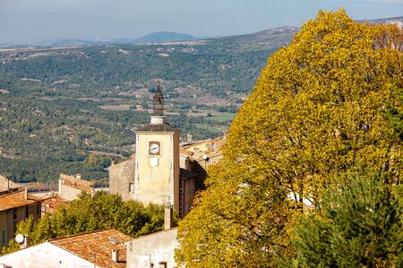View on Gordes, a small typical town in Provence, France. Beautiful village, with view on roof and landscape
