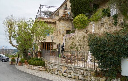 Mougins, France - April 03, 2019: Mougins is a commune in southeastern France that is a great place of tourist attractions with many art galleries, cafes and restaurants