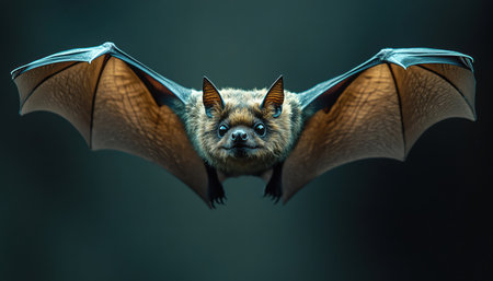 Close-up of a bat with spread wings and detailed features for wildlife enthusiasts.