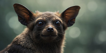 Close-up portrait of a bat: wildlife photography highlighting nature's unique creatures.