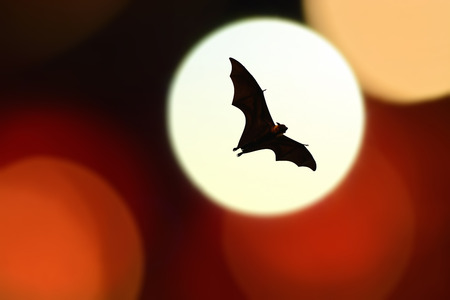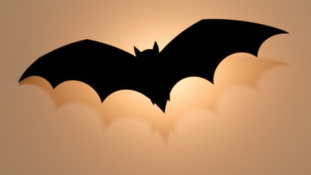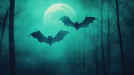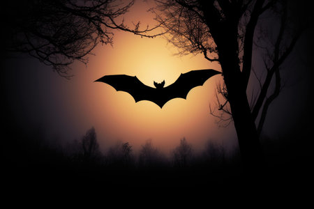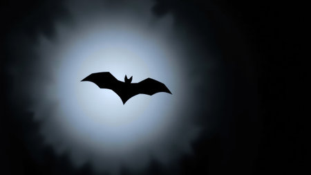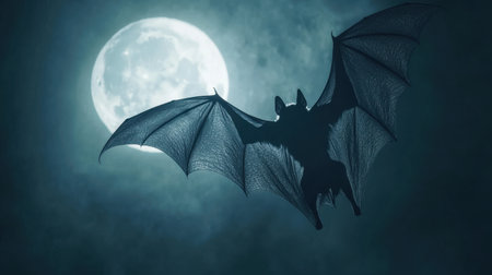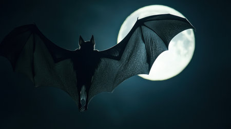 Majestic bat silhouette soaring under the full moon, casting an eerie shadow in the dark night sky