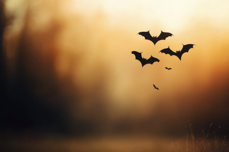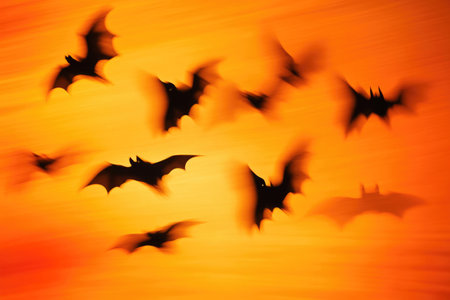 Dark Silhouettes of Bats Against an Orange Halloween Backdrop