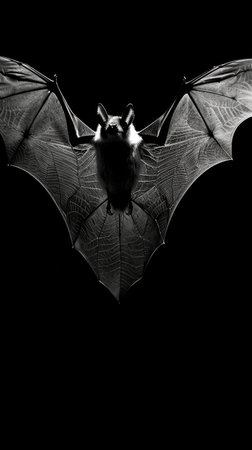 A sleek bat flits across a blank wall, captivating the viewer with its graceful silhouette. The scene is set in low light, adding an air of mystery to the moment.