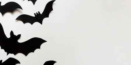Bat silhouettes on the white wall with copy space. Minimalist Halloween decor