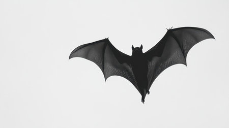 A bat gracefully soars through a light gray sky, showcasing its elegant wing structure and nocturnal nature, creating a stunning display of wildlife in motion.