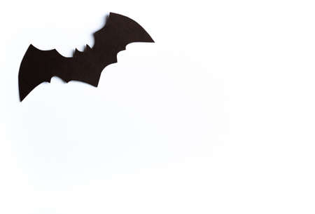 Halloween concept, black bat on white background, handmade atmospheric halloween background, flay, copy space, cut out
