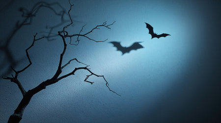 Halloween Decoration. Terrifying Shadow Puppets. Shadows bats on the gray background. Copy space.
