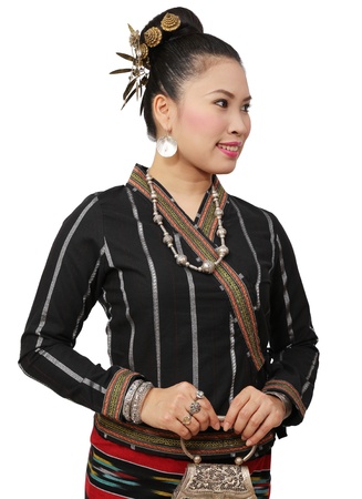 Image of Thai woman in black traditional clothes of the north of Thailand