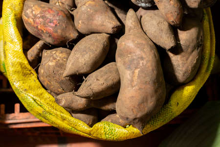 Sweet potato on sack for being cooking ingredient for make food or dessert