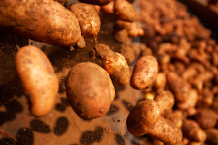 Raw potatoes background. Fresh potatoes close-up. Potatoes background.