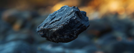 Crushed charcoal stones dispersed on a cream matte surface with artistic lighting