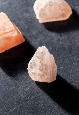 Himalayan Pink rock Salt on marble background. Interior decoration.