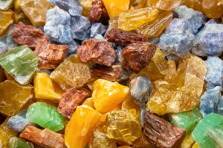 a close-up of a colourful frit of glass, ready to be melted, created with generative ai