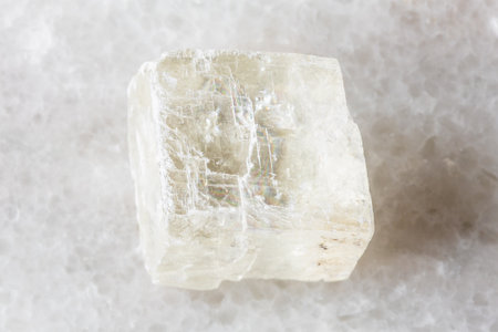 sample of raw oligoclase rock on white marble background close up from North Karelia, Russia