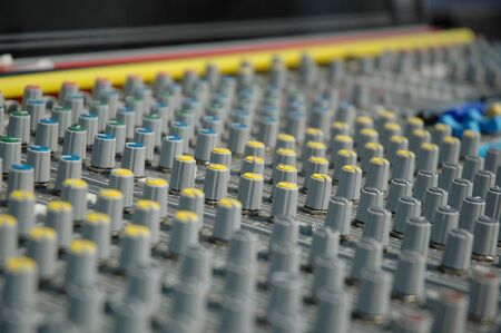 Analogue sound mixing table. Foreground and background out of focus, focus in the middle of the shot