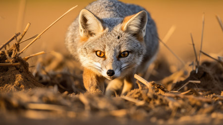 ground gray fox illustration tail gaze, prey instincts, prowess predator ground gray fox