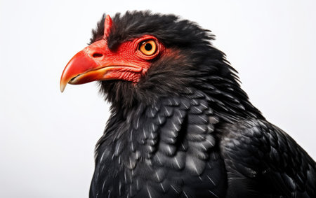 close-up portrait of a buffoon eagle with a bright red beak