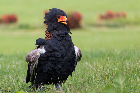 The Bateleur eagle is the most famous of the snake eagles. Displaying face feathers this bird is the national emblem of Zimbabwe