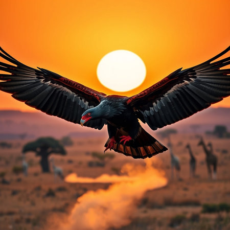 Bateleur Eagle - Bird Background from wild Africa - Animal Babies and Mothers gather for a party