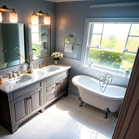 Experience a bright and airy modern bathroom featuring natural light, elegant design, and relaxing ambiance. Ideal for home decor inspiration and wellness.
