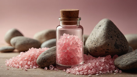 Close up of himalayan bath salt crystals. Spa treatment, relaxation background