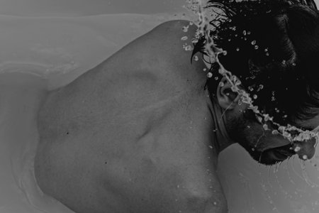Man Showering, Seen from Behind, Portrait Emphasizing Cleanliness
