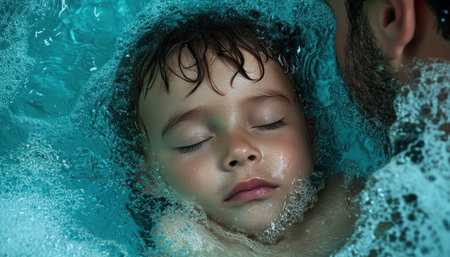 A father tenderly carries his sleeping child, post-bath, to bed The image captures a profound connection; his gentle embrace, the child's peaceful slumber It's a moment brimming with love and security, a simple yet powerful depiction of paternal affection and the comfort they share AI Generative