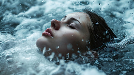 Pensive Teenage Dreamer in a Dreamlike Bath, Contemplating Life While Surrounded by Bubbles