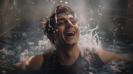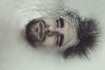 Portrait of a young handsome man taking a bath