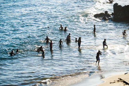 Salvador, Bahia, Brazil - September 05, 2021: People bathing in the water at Paciencia beach in Salvador, Bahia, Brazil.