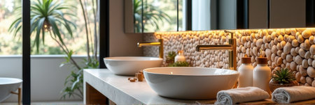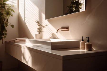 modern house faucet sink interior sunlight counter bathroom design basin luxury. Generative AI.
