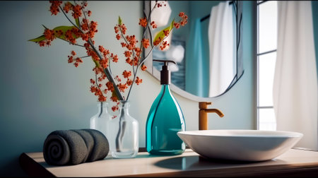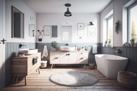 Contemporary Bathroom Interior Design featuring a Wooden Vanit Generative AI