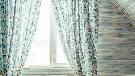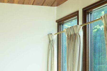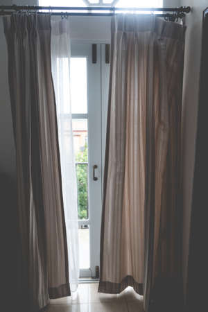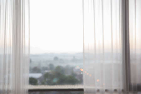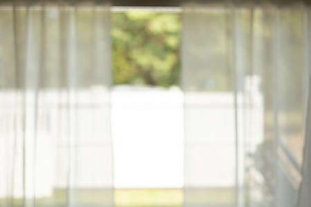 Defocused curtain window with sunlight in the early morning. For montage product display or design key visual layout