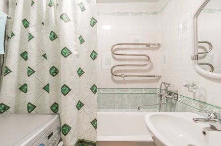 Russia, Moscow- July 05, 2019: interior room apartment. standard repair decoration in hostel. bathroom and toilet