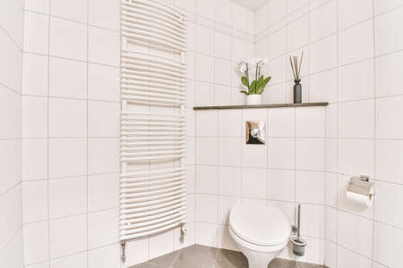 Interior of small clean washroom in miniature style