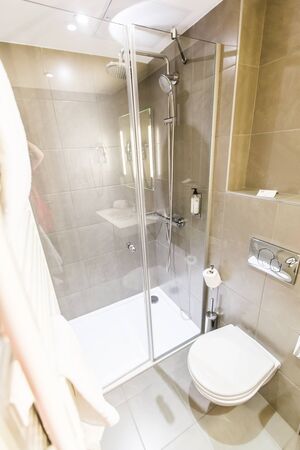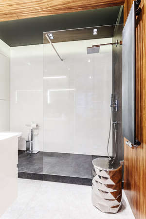 Modern shower stall in a bright bathroom